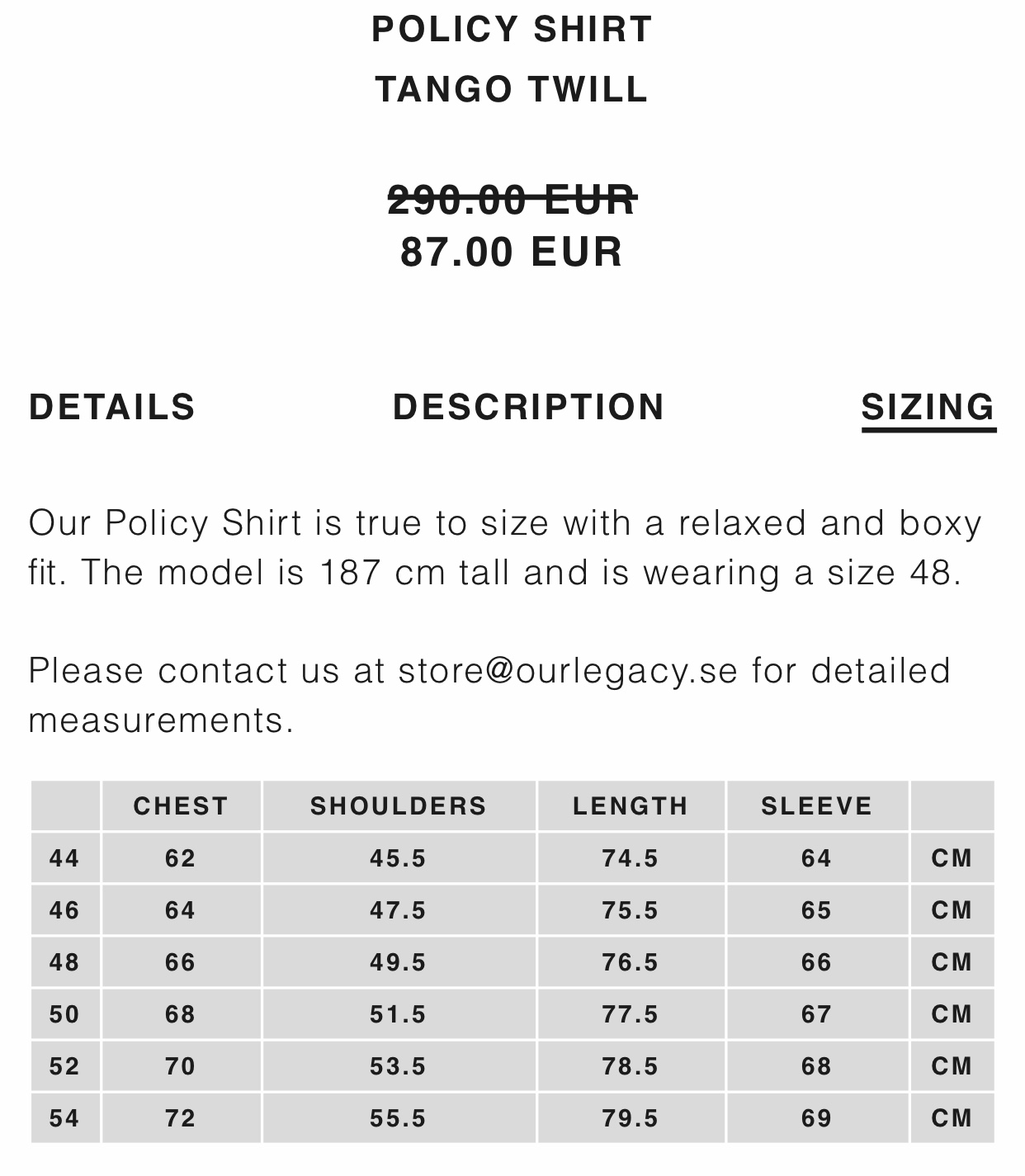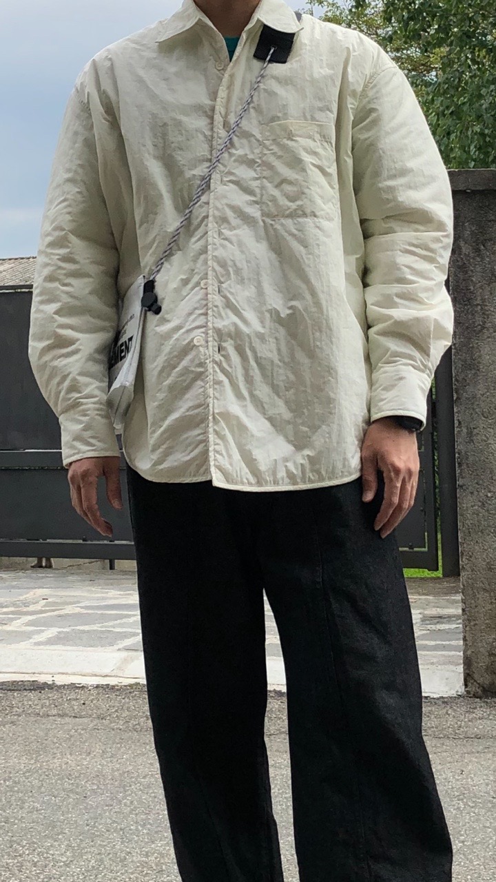 아워레가시의 셔츠 대부분 몸통은 여유롭게 나오고 있어서 중요한 건 이 기장감과 이 셔츠를 목 까지 다 채워 입고 싶다면 넥 사이즈까지 알아야 하는데 이 부분의 사이즈 디테일은 없어서... 결국 나는 두 개의 사이즈를 구입해 보기로 했다. (나에게 팔 기장감은 88이 더 어울린다).