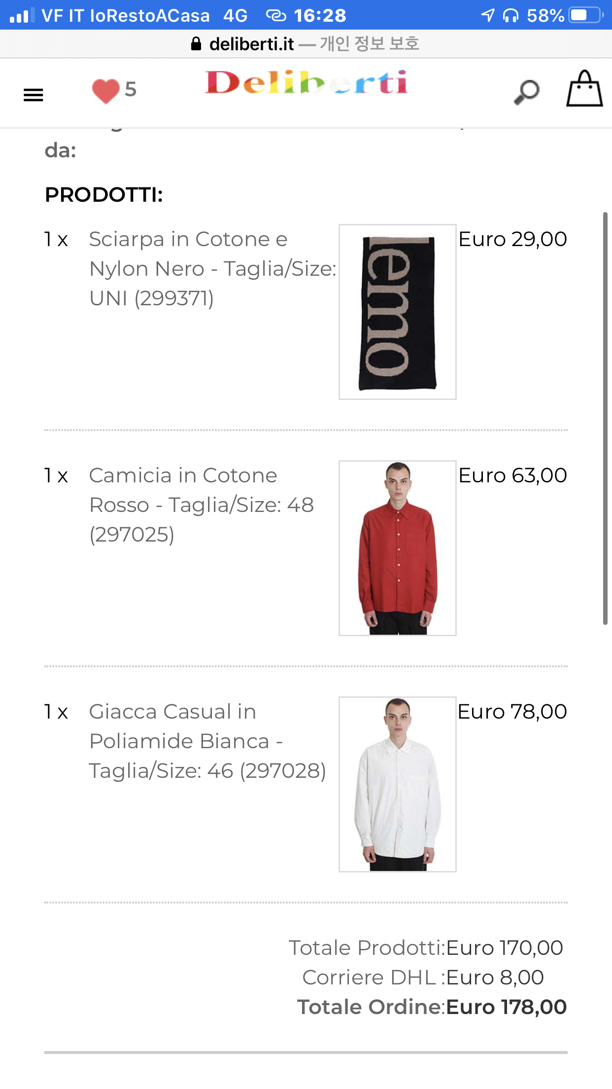 이번에 좋은 딜? 가격이 좋은 사이트를 통해 우리의 유산 아워레가시 셔츠 두장을 구매했다. 입어보고 구입하는 것이 가장 좋겠지만 지금 이탈리아 전체 이동 제한령이 걸려 있는 상태에서 나는 셔츠를 46 하나 48 하나 주문했다.