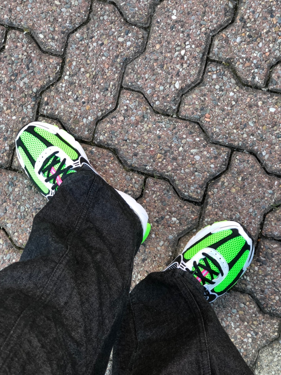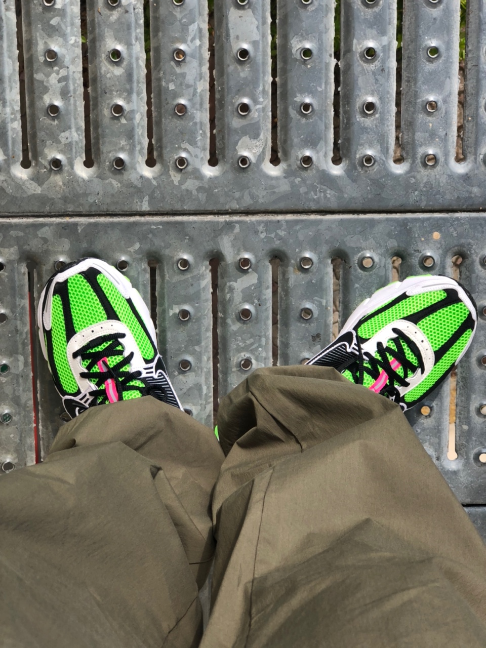 아 진짜 영롱하다. 진짜 갑피의 대부분의 매쉬로 되어있어서 통기성이 정말 좋고 착화감도 상당하다. 누군가 약수터 옆 나무에 등 부비부비 하시던 아찌가 신고 있었다고 할지도 모르지만 음 요즘 그런 운동화만 찾아 신는 추세.