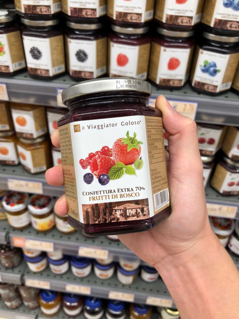 내일 아침으로 먹을 베리류 잼과 코르네띠 한 상자.