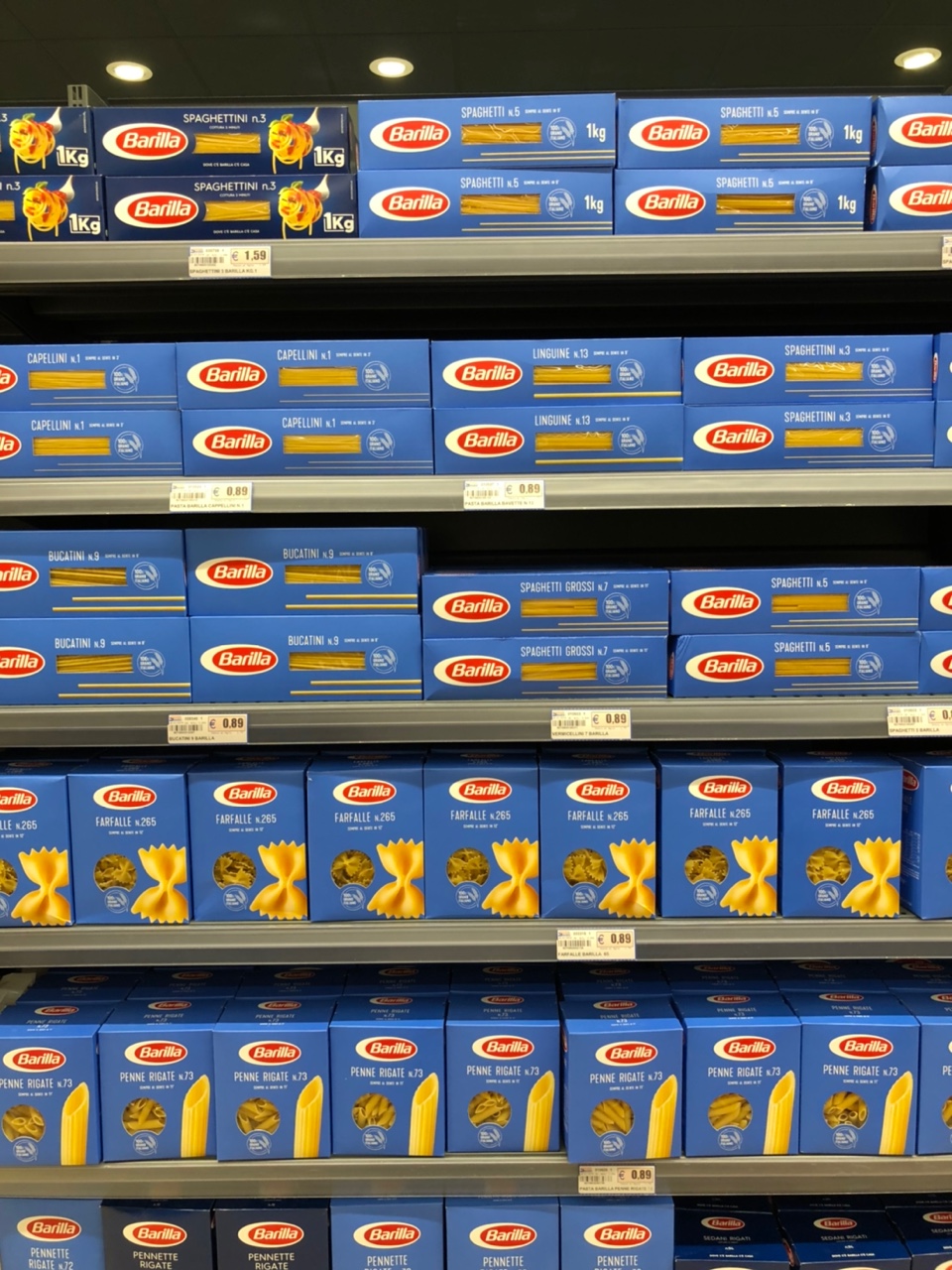위 브랜드가 이탈리아에서 가장 사랑받는 건식 빠스따 브랜드인데 약 한 달 전 슈퍼 대란? 이후 박스의 컬러가 바뀌었다. 나도 오늘 확인. 좀 더 진한 블루 박스가 예전의 박스이다. 뭔가 박스 생산에 문제가 생긴 모양이다.