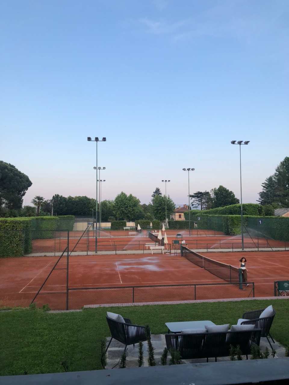 테니스 선생님은 벌써부터 술 언제 먹을지 이야기를 하고 있다. 두 달 동안 테니스 레슨을 못해서 잔디 깎는 일을 했다고 하던데...