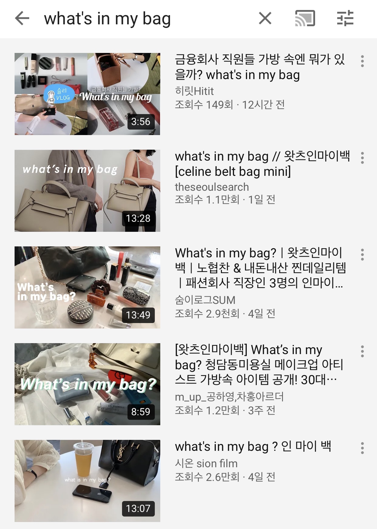 크리에이터의 가방 속에 넣고 다니는 물건들을 하나하나 이야기해주는 콘텐츠.