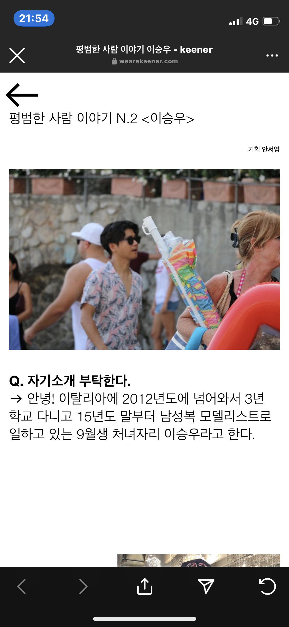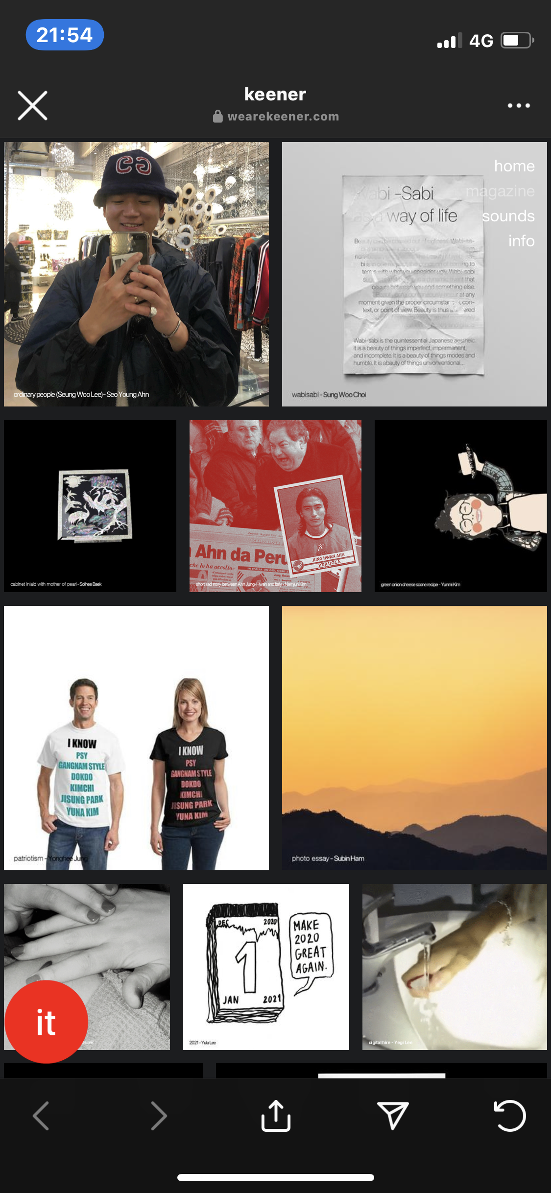 키너 keener 라는 웹 기반의 매거진은 이탈리아 베이스의 20대 한국인 친구들이 모여서 만든 매체로 나같이 이제는 어디에서도 20대 친구들의 생각을 알 방법이 없는 친구들에게 조금이나마 들여다 볼수 있는 통로를 제공한다. 처음 발행은 실제 인쇄물로 시작을 했지만 역시 빠릿빠릿한 친구들이라 그런가 2021년 1월호 부터 바로 언텍트에 맞춘 웹기반으로 플랫폼을 변경했다.